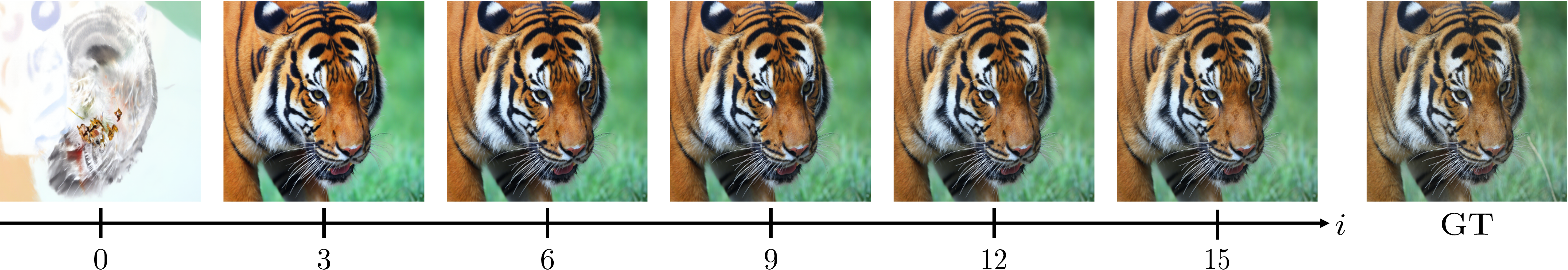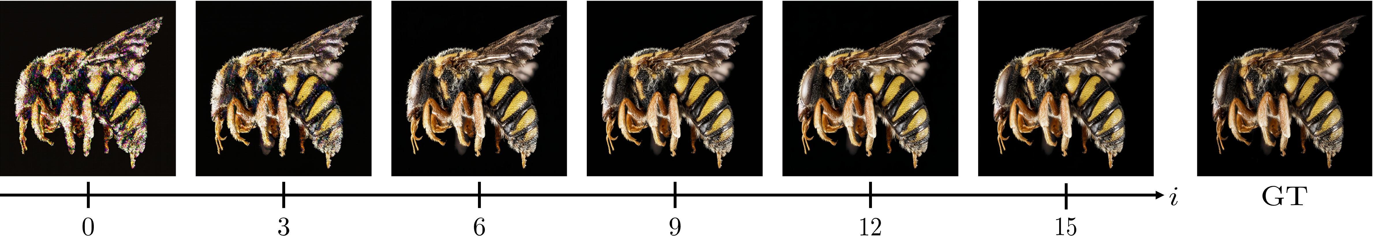 Intermediate samples attained during our zero-order optimization. As the iterations progress, the reconstruction converges to the ground truth image.